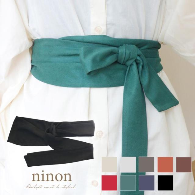 上品なツヤを残すスエード調の生地を使用し、滑らかな肌触りが心地よいリボンベルトです。
