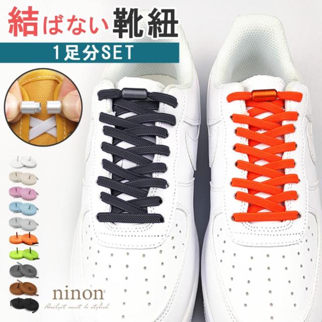 靴紐 靴ひも ゴム 結ばない くつひも おしゃれ 結ばない靴紐 平紐 スニーカー 黒 留め具 伸びる 100cm ネジ式 ストレッチ 2本セット 子供用 レディース メンズ