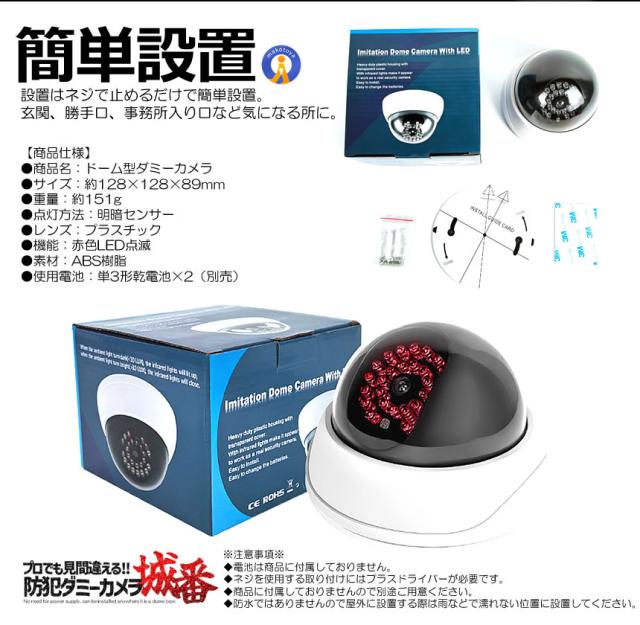 2個セット ドーム型 ダミーカメラ 室内用 屋外用 防犯カメラ 明るさセンサー 自動点滅 LED28灯 ダミー 監視カメラ DOMUKAME s-km2502-39a