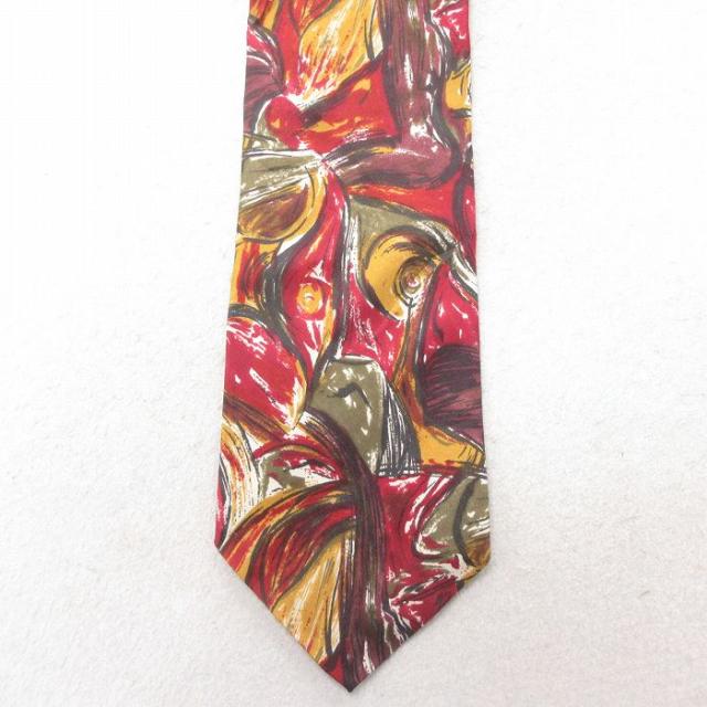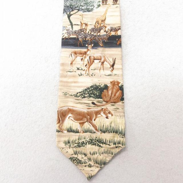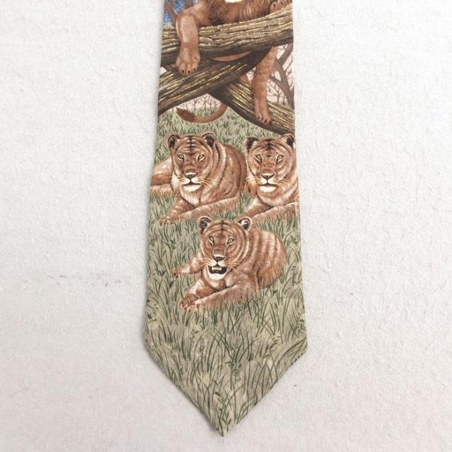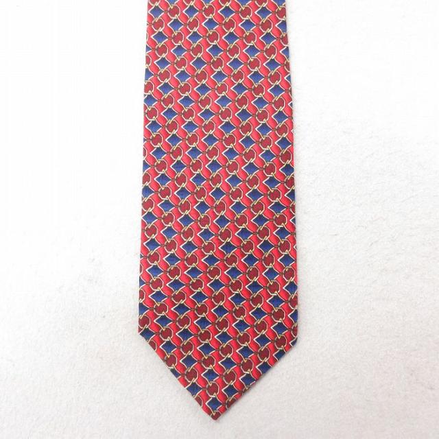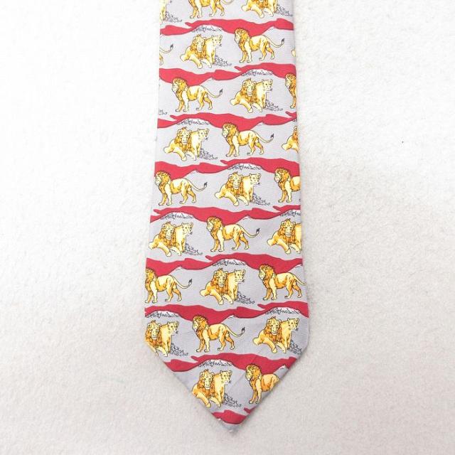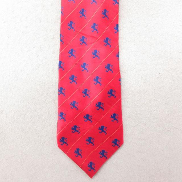 中古 ネクタイ ライオン シルク 赤 レッド 中古 古着