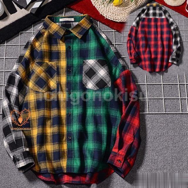 シャツ メンズ レディース 長袖 秋 トップス アシンメトリー 切り替え チェック柄 プルオーバー ゆったり 配色 個性 体型カバー カジュアル 長そで 十分袖 10分袖 長袖シャツ カラーシャツ 大きいサイズ 大きい 大きめ オーバーサイズ オーバーシャツ ビッグサイズ ビッグシャツ ビッグシルエット シルエット ワイドシルエット おしゃれ お洒落 オシャレ キレイ キレイめ 個性服 上品上質 春 春服 春物 秋 秋服 秋物 ファッション 韓国風 韓国ファッション 20代 30代 40代