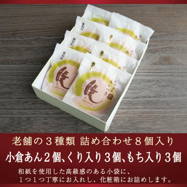 小倉・栗・もちの老舗の3種類詰め合わせ どら焼き 暁 8個入り 送料無料(北海道 沖縄除く)老舗 和菓子 お菓子 和スイーツ ギフト 贈り物 お中元 お歳暮 お年賀 バレンタインデー ホワイトデー 父の日 母の日 お誕生日 プレゼント 敬老の日 御礼 御祝 退職 異動 挨拶 送別