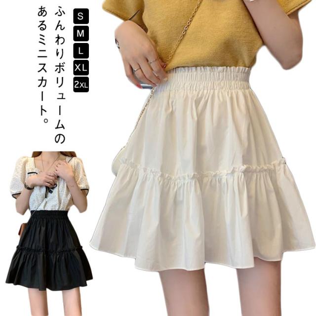 ミニスカート 夏 春 無地 フレアスカート ミニ ミニ丈 インナー付き かわいい ひざ上 ティーン ミニスカ ショート丈 ウエストゴム ティアード ミニスカ フェミニン かわいいスカート
