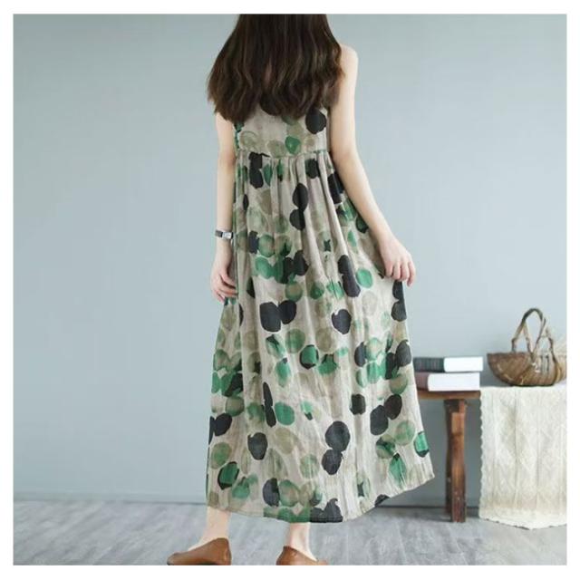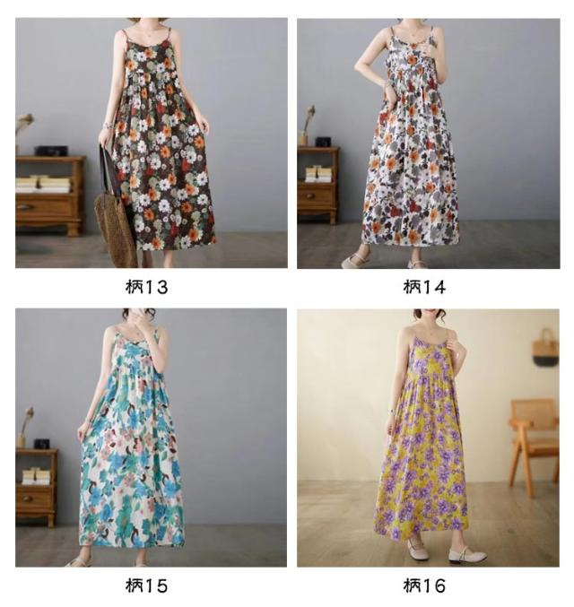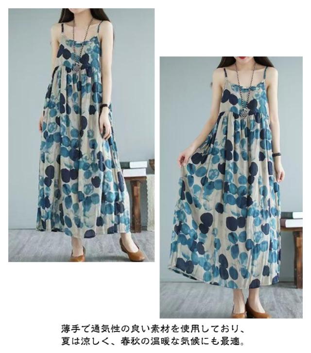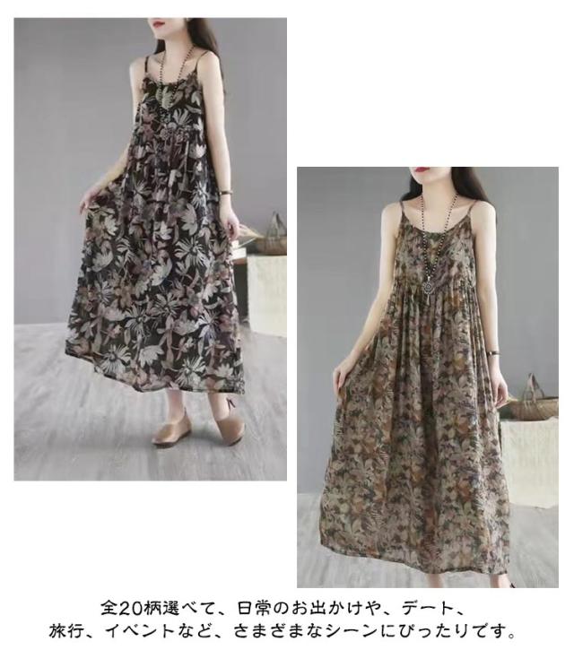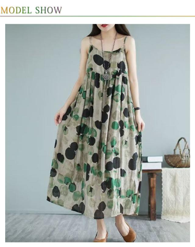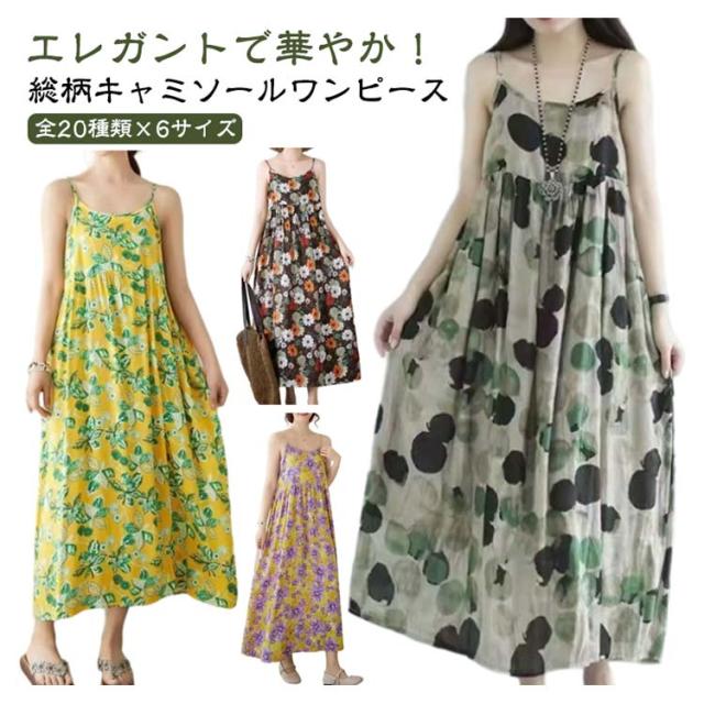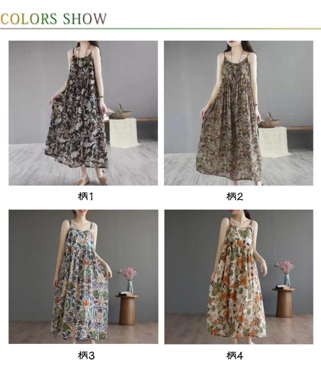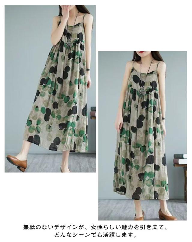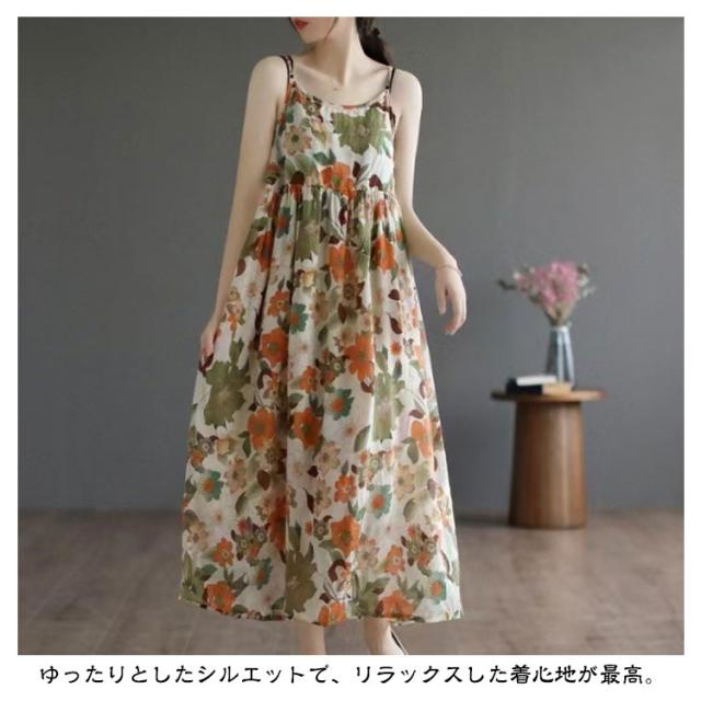 ノースリーブワンピース レディース ワンピース 花柄 水玉 ロングワンピース 袖なし ルームウエア 総柄 かわいい 大きサイズ リラックス 在宅着 キャミソールワンピース ナチュラル 薄手 柔らかい 30代 40代