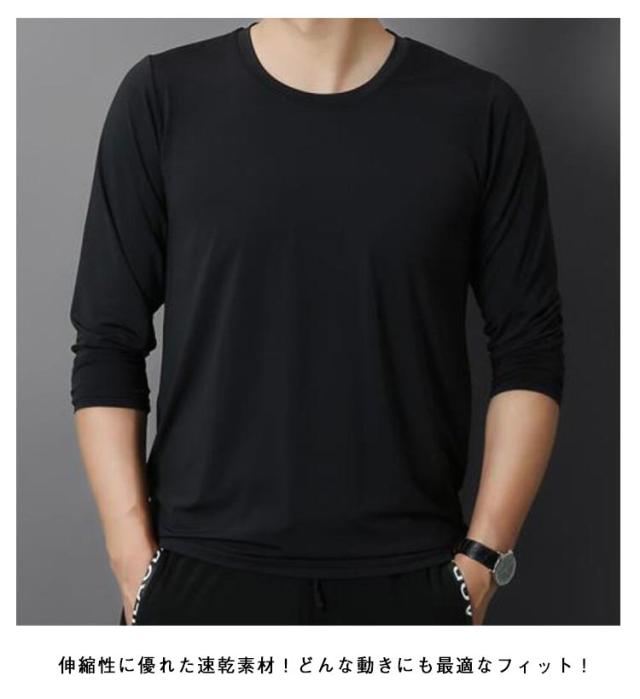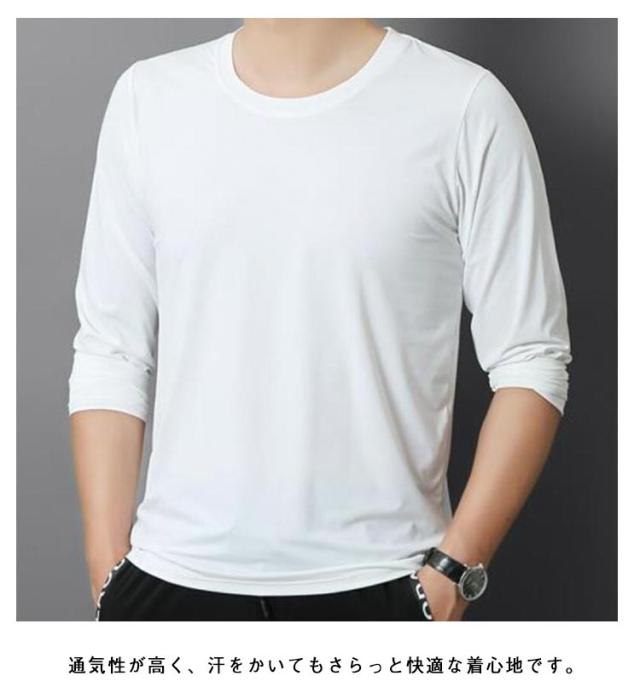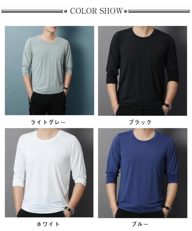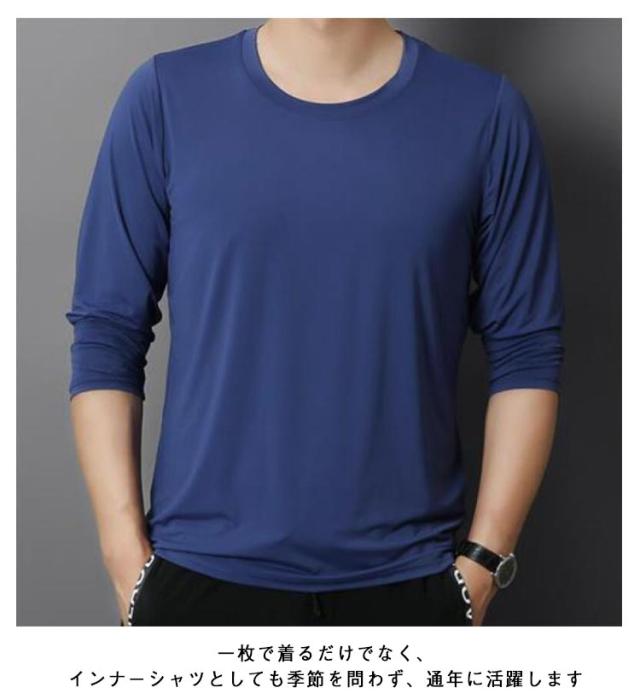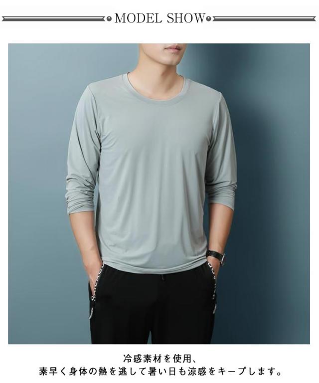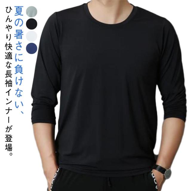 Tシャツ インナーシャツ 接触冷感 メンズ 長袖 涼しい トップス アイスシルク 薄手 ストレッチ 吸汗速乾 作業服 伸縮性 トレーニングウェア ゴルフウェア 野球 大きいサイズ バイク 釣り キャンプ スポーツ 送料無料