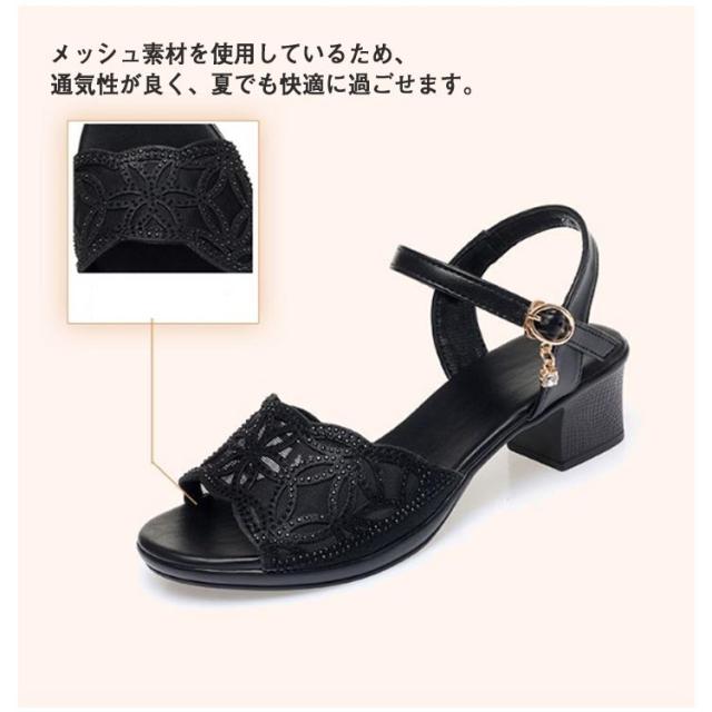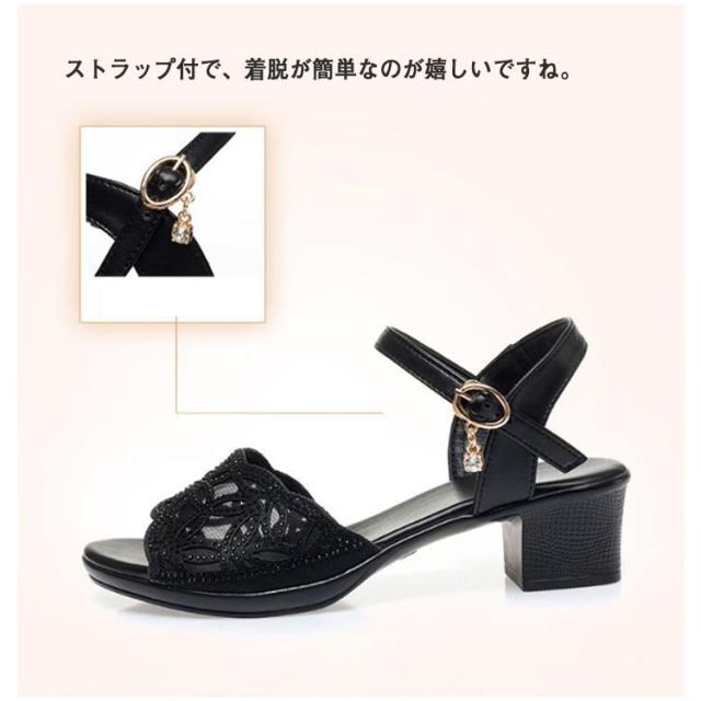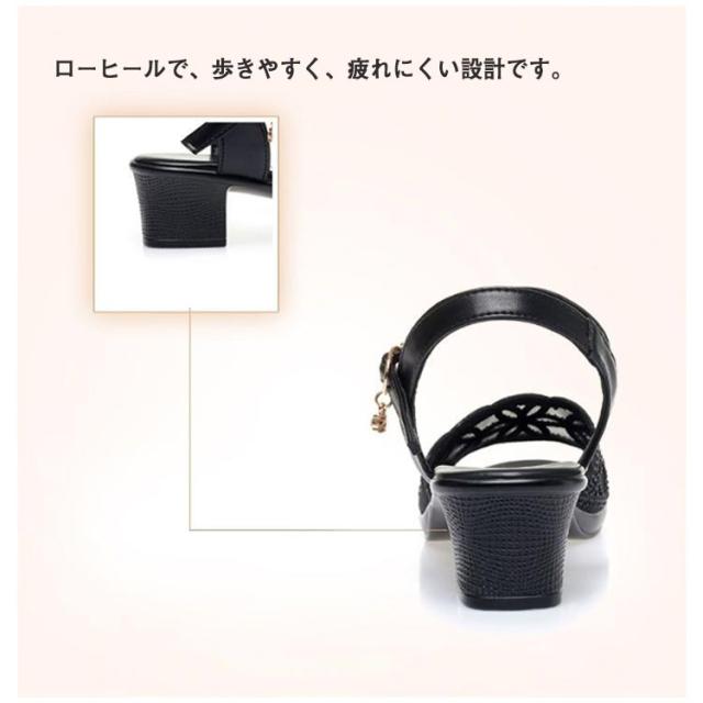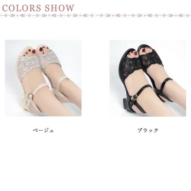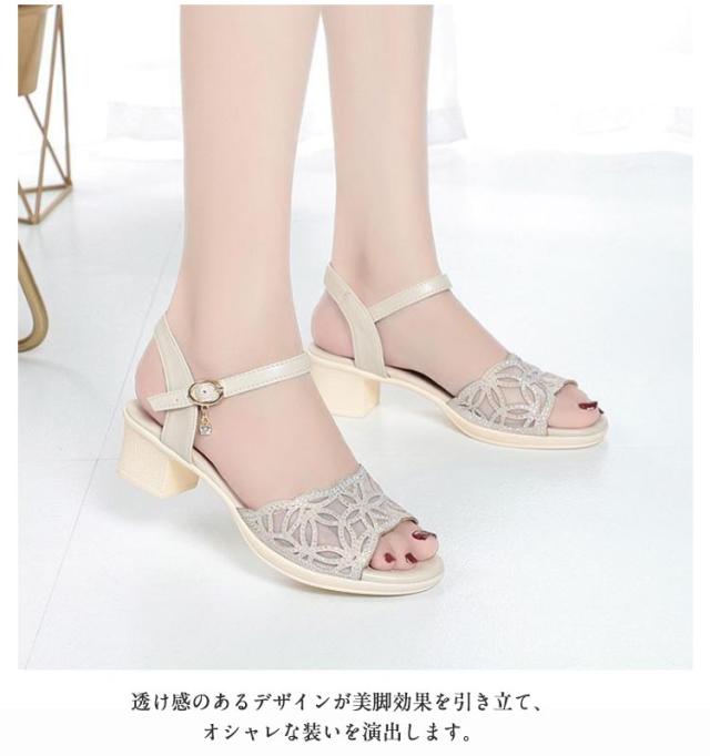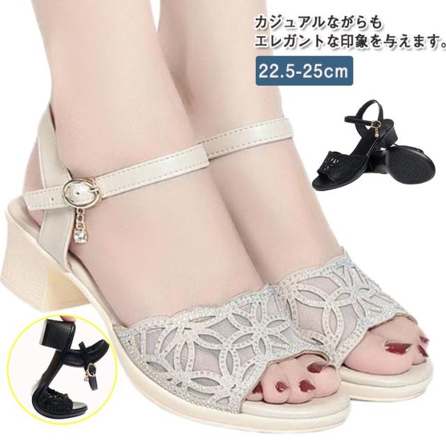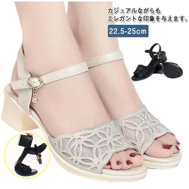 | カジュアルながらもエレガントな印象を与えます。 ローヒールで、歩きやすく、疲れにくい設計です。 メッシュ素材を使用しているため、通気性が良く、夏でも快適に過ごせます。 ストラップ付で、着脱が簡単なのが嬉しいですね。 透け感のあるデザインが美脚効果を引き立て、オシャレな装いを演出します。 | |