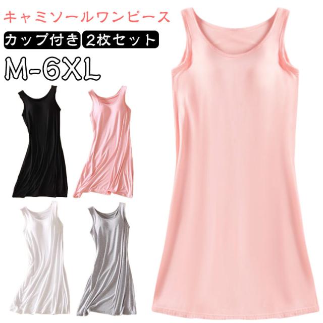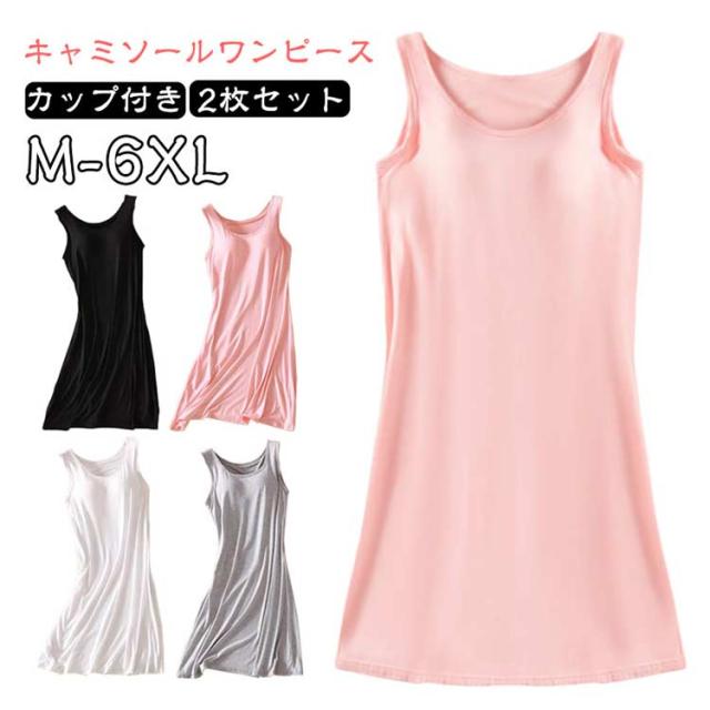 カップ付き ワンピース レディース キャミソールワンピース 2枚セット ワンピース ロング カップ付き ブラトップ 胸パッド 黒 ロング ロング丈 夏 きれいめ ワンピース ジャンパースカート カップ付き インナー ワンピース 送料無料