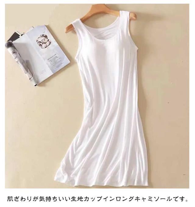 | さらり生地のブラカップ付きレディースロングキャミソール。 伸縮性に優れた生地はソフトで気持ちの良い肌ざわり。 ブラ+キャミ+ペチコートがこれ1枚でOK! 透け感のあるワンピースなどのインナーにお薦めです。 リラックス出来る部屋着やナイトウエアにしてもいいかも。 肌ざわりが気持ちいい生地カップインロングキャミソールです。 | |