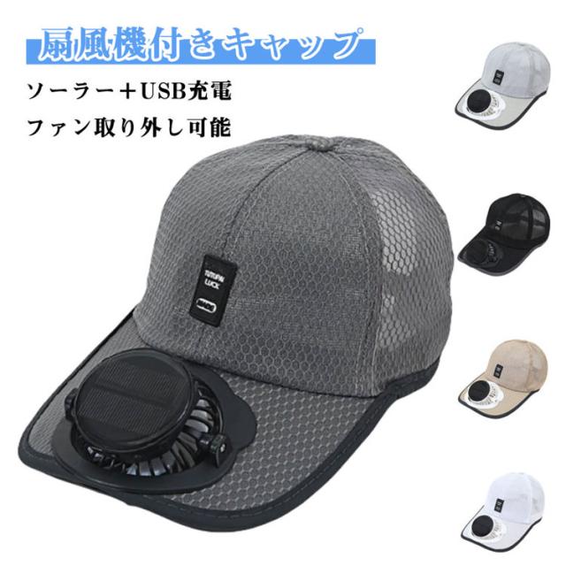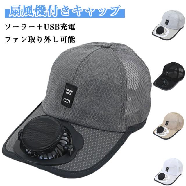 扇風機付き キャップ ソーラー+USB充電 長時間連続稼働 2way メッシュ 通気性 ファン付き 帽子 UVカット 3段階風量調節 ファン帽子 ファンキャップ おしゃれ 夏 扇風機 帽子 野球観戦 サッカー観戦 畑仕事 暑さ対策 メンズ レディース 日よけ帽子