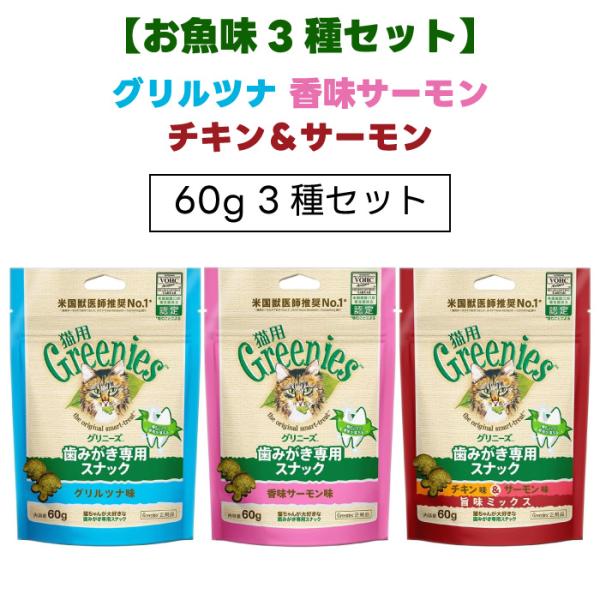 【おさかな味3種セット】Greenies 猫用グリニーズ グリルツナ 香味サーモン チキン&サーモン 60gセット キャットフード 猫