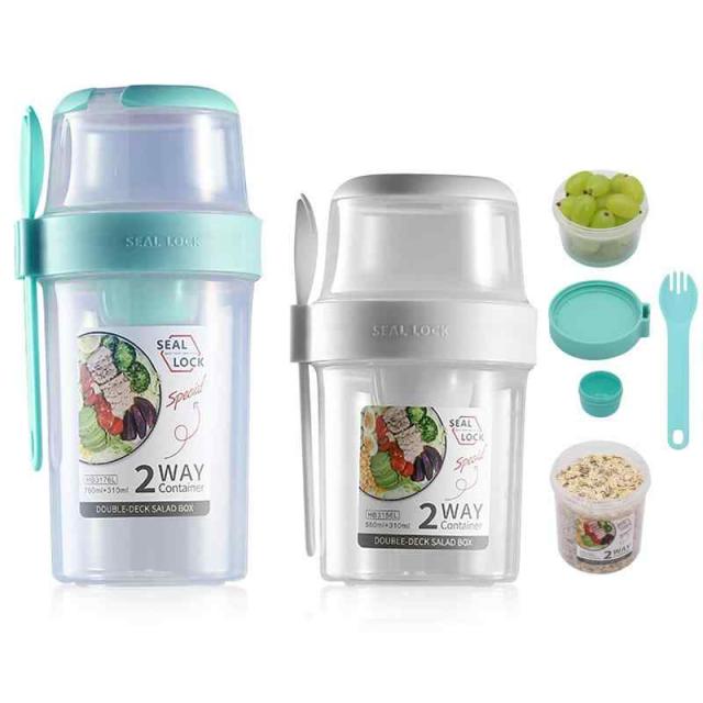TeamSky サラダカップ サラダポット 分別できるドレッシング フォーク付きのサラダ容器 ソースカップ付きお弁当カップセット サラダコンテナ ランチジャー 食品容器 サラダドレッシングソースカップ フード おやつやフルーツ ミルク用お弁当箱 2セット