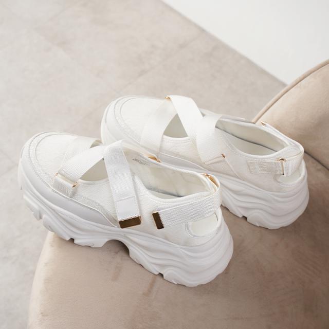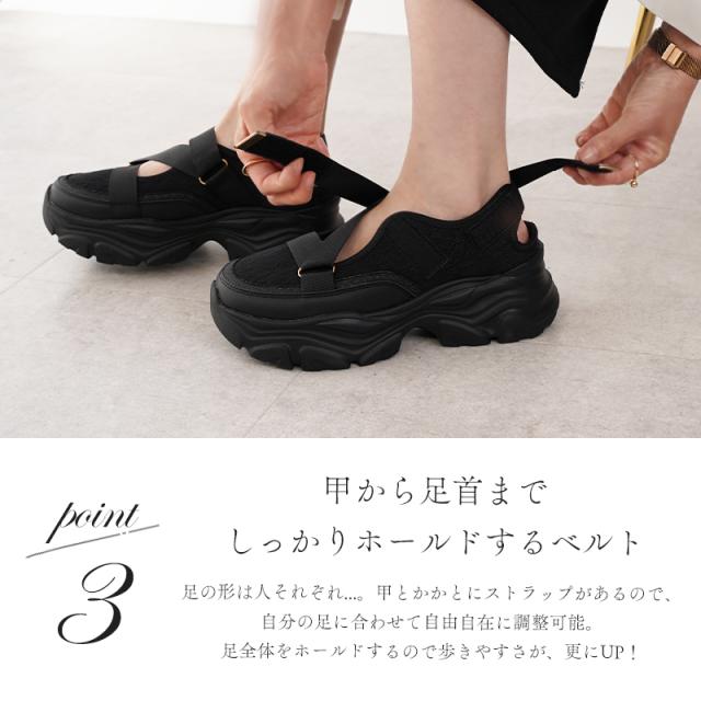 【一足あると便利♪ ベルト付で歩きやすい厚底スニーカーサンダル登場!】