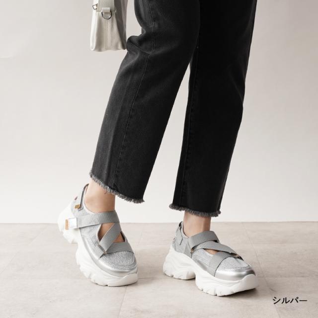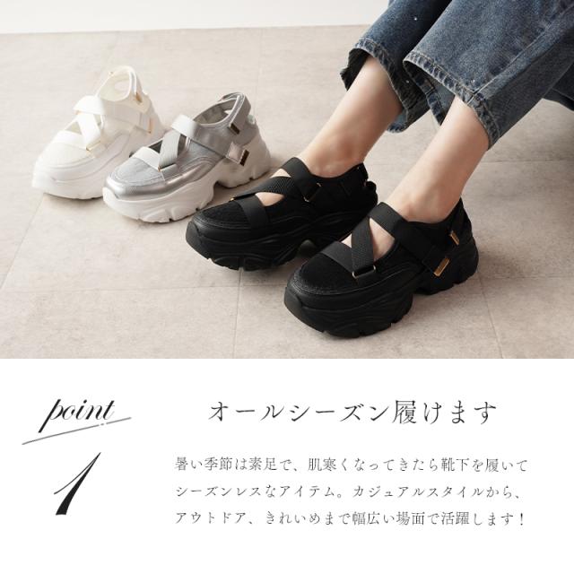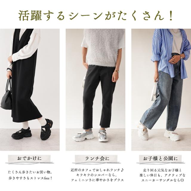 スニーカー サンダル 厚底 レディース 25秋冬新作 全3色 黒 ホワイト シルバー S-LL スリッポン スポサン スポーツサンダル ローカット 軽量 通気性 痛くない 散歩 普段使い おしゃれ キラキラ 靴下合わせ 脱げない 送料無料