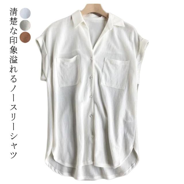 ノースリーブシャツ フレンチスリーブ シャツ シンプル トップス 襟付き 袖なし 春夏 無地 レディース 夏 カジュアル おしゃれ スーツ インナー ブラウス ゆったり タンクトップ 春 薄手 OL 通勤 通学 シフォンシャツ 着?せ 体型カバー オフィス ギフト