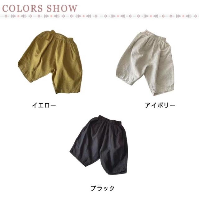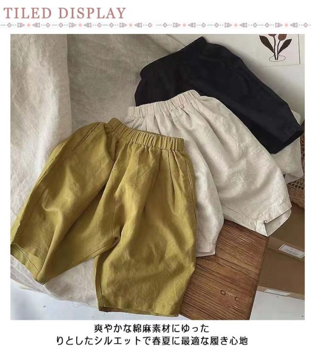 | 春夏に最適なキッズ用綿麻パンツ 爽やかな綿麻素材にゆったりとしたシルエットで春夏に最適な履き心地 ウエストがゴムなのでお腹を締め付けず楽ちんです 足裾にゴムが付いてる仕様で虫対策にも役立つ トップスとのコーデは自由、春夏ファッションに必ず大活躍の一枚 普段着だけでなく部屋着としても◎ | |