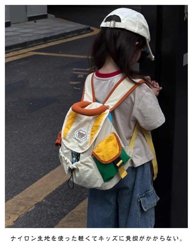 | お子様の使いやすさにこだわったデイパック。 ナイロン生地を使った軽くてキッズに負担がかからない。 使用頻度の高い小物を入れておけるフロントポケット、ペットボトルや折りたたみ傘の収納に便利なサイドポケット。 ちょっぴり大人っぽさのあるゆめかわいい7色展開。 保育園、幼稚園、小学校の遠足やアウトドアにと大活躍のバッグです。 | |