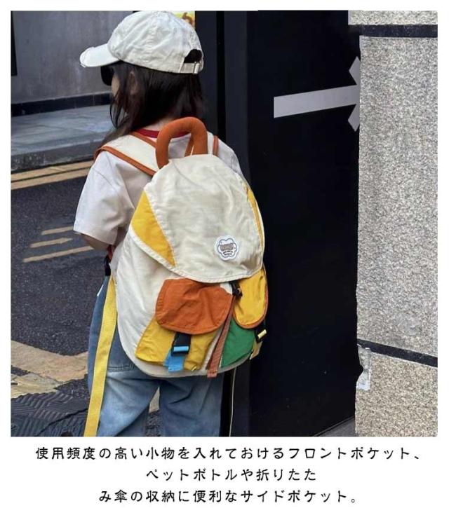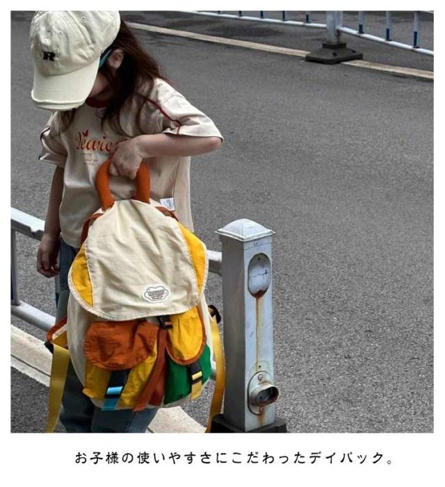 | お子様の使いやすさにこだわったデイパック。 ナイロン生地を使った軽くてキッズに負担がかからない。 使用頻度の高い小物を入れておけるフロントポケット、ペットボトルや折りたたみ傘の収納に便利なサイドポケット。 ちょっぴり大人っぽさのあるゆめかわいい7色展開。 保育園、幼稚園、小学校の遠足やアウトドアにと大活躍のバッグです。 | |