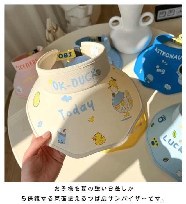 | お子様を夏の強い日差しから保護する両面使えるつば広サンバイザーです。 軽量で風通しも良く吸水速乾性がある素材を使用、暑い日差しから頭を守ってくれます。 サンバイザーなので、蒸れる心配なし通気性抜群 通園・通学等の普段使いやお出掛け・旅行にも幅広く活躍! 兄弟姉妹のお揃いに | |