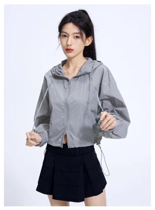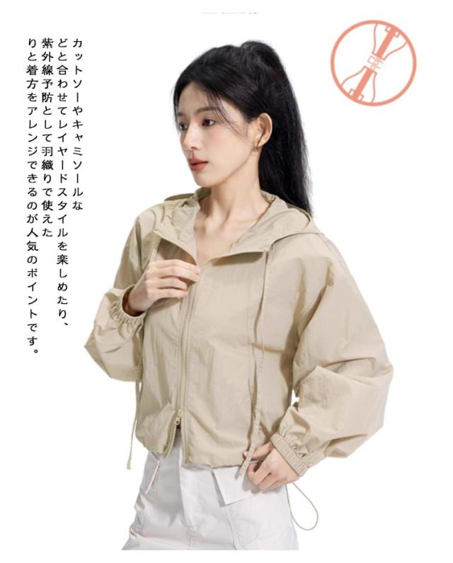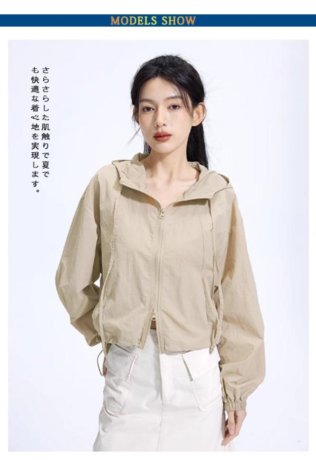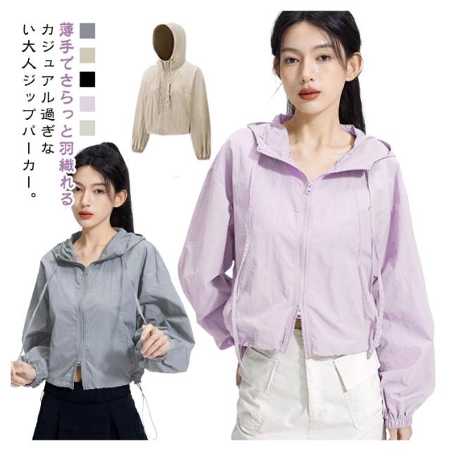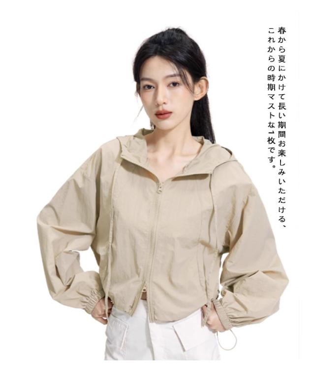 ショート丈 フード付き 冷感 ジップアップパーカー レディース UVカット 体型カバー 夏 春 羽織り 長袖 カーディガン パーカー 薄手 日焼け防止 冷房対策 長袖パーカー ラッシュガード オフィス トップス カジュアル 通勤 夏用