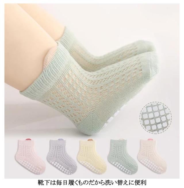 新生児 薄手 靴下 キッズ メッシュ ソックス 赤ちゃん ベビー 子供用靴下 夏 ベビー 赤ちゃん 滑り止め メッシュソックス ショートソックス 無地 男の子 女の子 ベビー用品 コットン 幼児 子供服