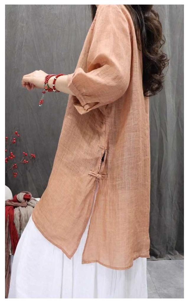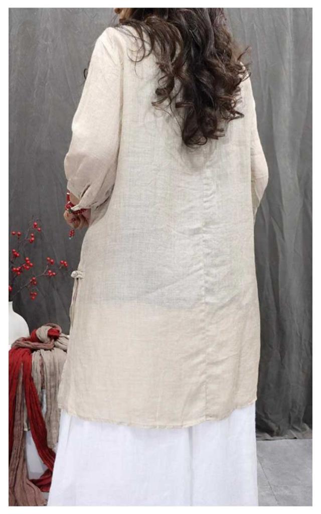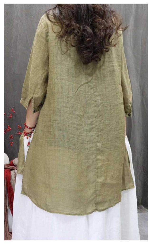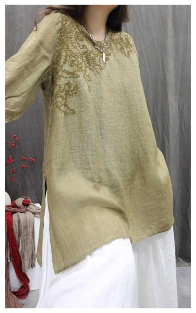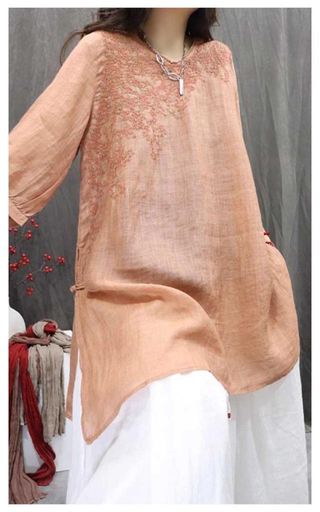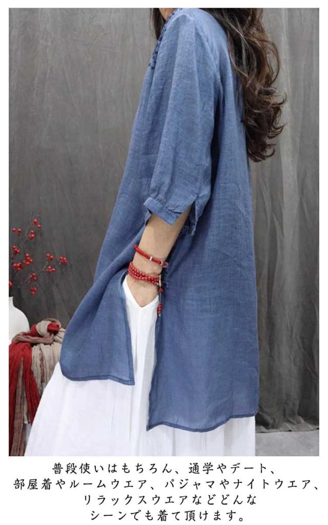 ロング プルオーバー ブラウス レディース 綿麻調 チュニック きれいめ トップス 刺繍 ゆったり カジュアル エレガント 七分袖Tシャツ 大人 七分袖Tシャツ 体型カバー 可愛い 通勤 OL