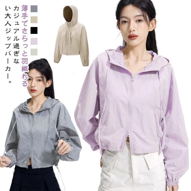 ショート丈 日焼け防止 ジップアップパーカー レディース ラッシュガード UVカット カーディガン パーカー フード付き 冷房対策 長袖 夏 薄手 体型カバー UVカット 春 長袖パーカー 羽織り オフィス トップス カジュアル 通勤 夏用