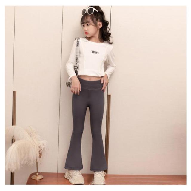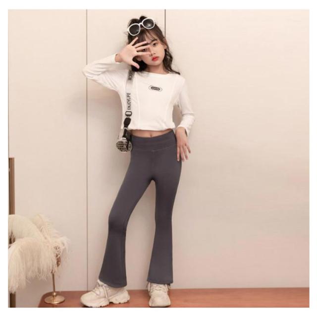 パンツ キッズ フレア レギンス 女の子 大きいサイズ 伸縮性 ハイウエスト ジュニア ロングパンツ 長ズボン フレアパンツ 美脚 子供服 子ども服 フレア ストレッチ フレア スーパーストレッチ ジーンズ 脚長パンツ ヨガパンツ