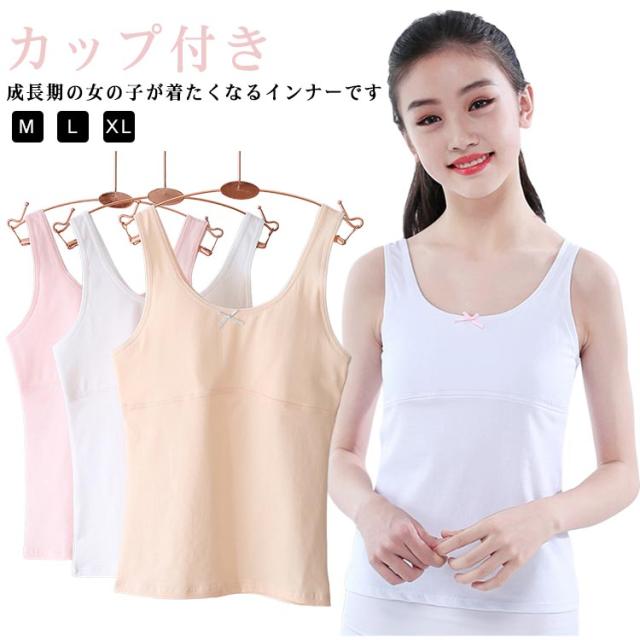ジュニアブラ タンクトップ カップ付き インナー 子供 下着 中学生 女子 女の子 小学生 キッズ 女児 肌着 下着 透けにくい スポーツ お洒落