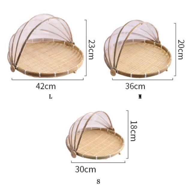 竹かご 水切りザル 梅干し 梅ざる 竹ざる 3サイズ 盆ざる 丸盆ざる 虫対策 天日干し 防塵 可動式フタ 漬物 通気性 陰干し 収納便利 使いやすい 台所用品 ネット付き 丸型 竹ざる 野菜バスケット 多機能