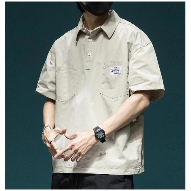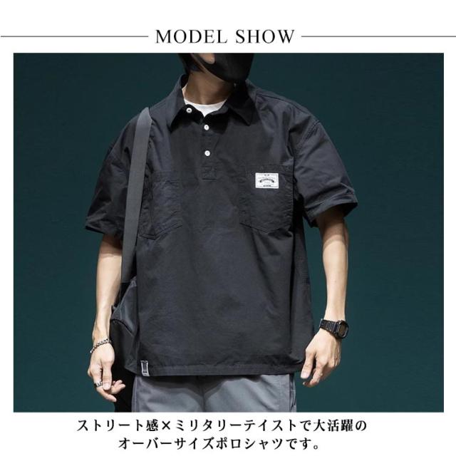 メンズ 半袖 ポロシャツ ポロシャツ ポケット付 プルオーバー オーバーサイズ ミリタリーシャツ ゆったり ハーフボタン カジュアルシャツ 通学 通勤 春夏 トップス ストリート 韓国 大きいサイズ