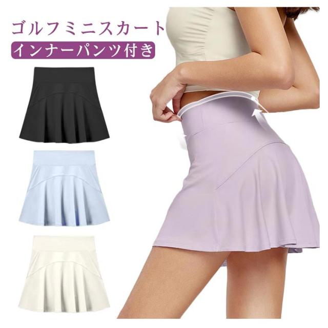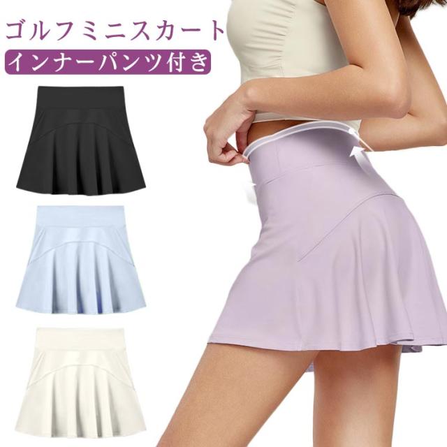 春 ゴルフミニスカート インナーパンツ付き 夏 無地 スカート ゴルフウェア ゴルフ ゴルフスカート シンプル インナーパンツ一体型 スコート 春夏 可愛い ショート丈 ストレッチ ペチパンツ付属 丈短め おしゃれ かわいい レディース 運動 アウトドア ランニング
