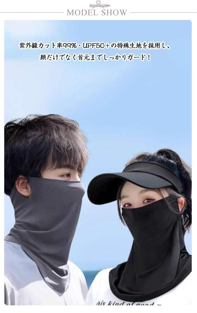 スポーツマスク 顔 接触冷感 メンズ レディース ネックカバー フェイスマスク UPF50+ 2枚組 フェイスカバー ネックガード 紫外線対策 首 UVカット 夏用 ひんやり 涼しい UVマスク 日焼け対策 息苦しくない 蒸れない
