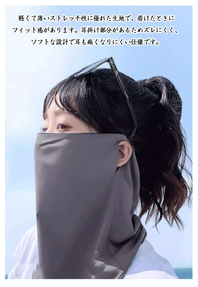 | ひんやり気持ちの良い接触冷感素材を使ったフェイスカバー。 紫外線カット率99%・UPF50+の特殊生地を採用し、顔だけでなく首元までしっかりガード! 紫外線対策をしながらも、通気性を備えた生地により、作業中でも呼吸がしやすく、ゴルフやテニスといったスポーツ時も快適に使用いただけます。 接触冷感素材を使用し、肌に触れた瞬間、ひんやり爽快! 軽くて薄いストレッチ性に優れた生地で、着けたときにフィット感があります。耳掛け部分があるためズレにくく、ソフトな設計で耳も痛くなりにくい仕様です。 | |