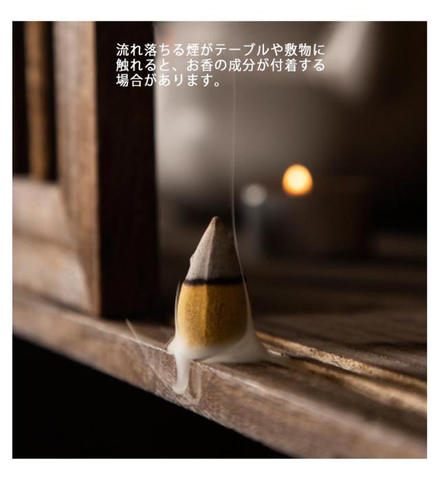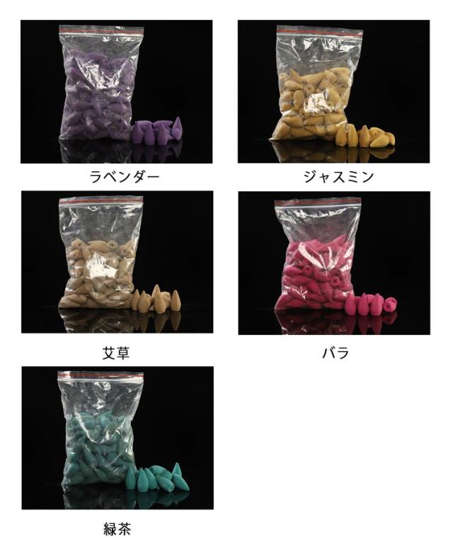 | 倒流香用 お香 8種類 120粒 倒流香の煙は、空気よりほんの少し重たい煙です。風の影響を受けやすいので、 風の影響の少ない場所や環境でお楽しみください 流れ落ちる煙がテーブルや敷物に触れると、お香の成分が付着する場合があります。 | |