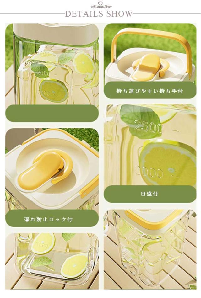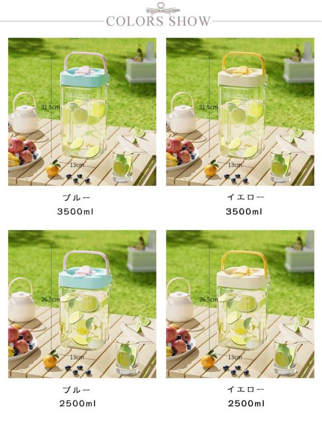 | 冷水筒 2500ml 3500ml 横置きでも注げます 漏れ防止ロック付 広い口径でお手入れ楽々 持ち運びやすい持ち手付 目盛付 | |