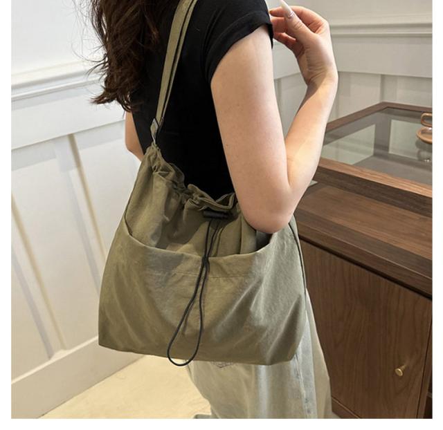 | ナイロン ショルダーバッグ。 汚れに強いナイロン素材を使用♪ 大きめのサイズ感とポケットが多くて、使い方自由自在☆ お手入れしやすいナイロン素材だから普段使いはもちろん旅行などの遠出にもおすすめ! | |