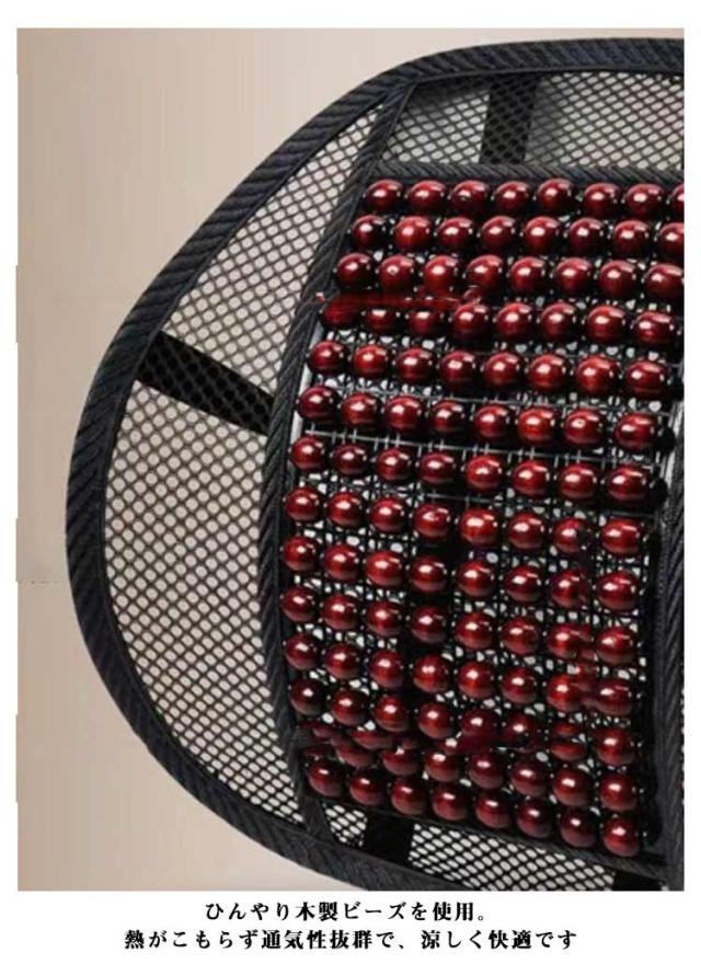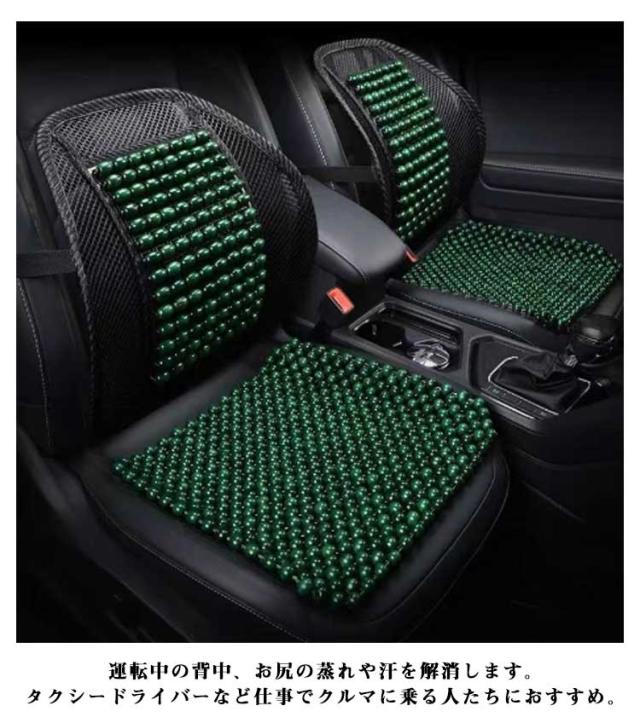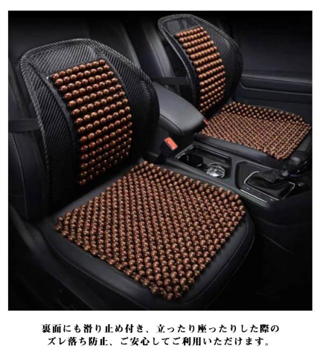 | 涼しい木製ビーズでできた車シートクッションです。【背もたれ+座面の2点セット】 お尻や背中をマッサージし、長時間座っているストレスを軽減します。 運転中の背中、お尻の蒸れや汗を解消します。タクシードライバーなど仕事でクルマに乗る人たちにおすすめ。 ひんやり木製ビーズを使用。熱がこもらず通気性抜群で、涼しく快適です。 大粒のビーズを編んだ木製ビーズクッションでマッサージ効果が期待できます。 耐久性があり、快適で、健康的で、環境に優しく、通気性がよく、細菌抑制作用がある。見た目も肌触りも良い。 裏面にも滑り止め付き、立ったり座ったりした際のズレ落ち防止、ご安心してご利用いただけます。 | |