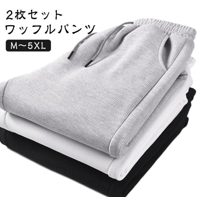 スエット 無地 春 大きいサイズ イージーパンツ スウェットパンツ 夏 秋 メンズ 【2枚セット】ワッフル ズボン パンツ ボトムス カジュアル 【2枚セット】ワッフル 部屋着 おしゃれ スポーツ レディース ルームウェア ジョガーパンツ ロングパンツ