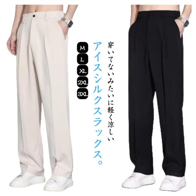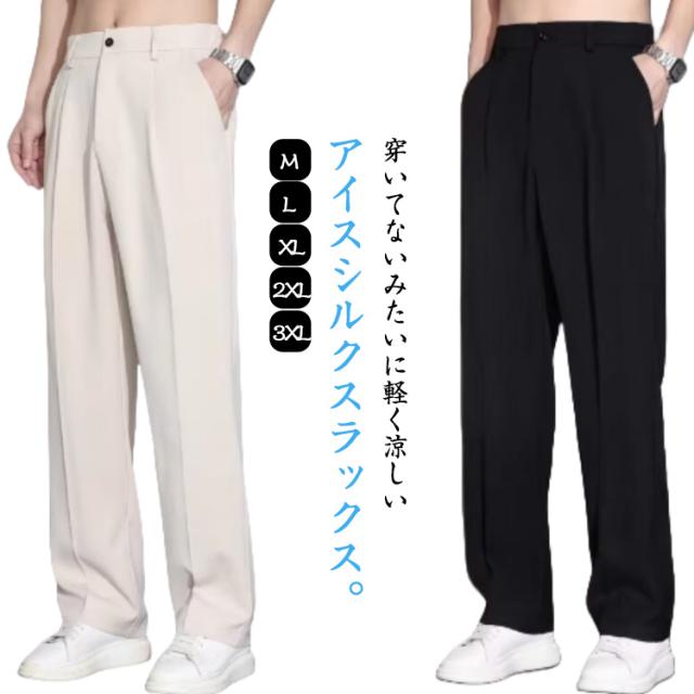 涼感 ビジネスパンツ ワイド アイスシルクパンツ 長ズボン 夏パンツ スラックス メンズ 大きいサイズ ゴルフパンツ ストレートパンツ チノパン 清涼 涼しい ズボン ゴルフウェア