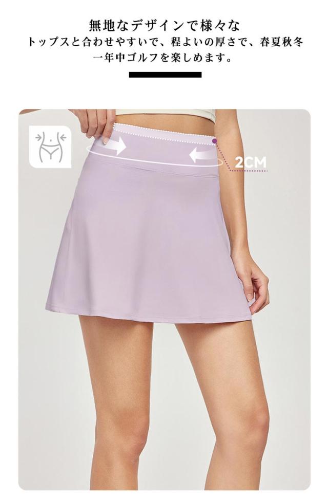 | インナーパンツ一体型デザインですので、スカートではミニ丈でも安心。またきれいなAラインシルエットも脚を細長く見せてくれます。 デザイン性や功能性両方が備えており、アウトドア活動に大活躍です。 無地なデザインで様々なトップスと合わせやすいで、程よいの厚さで、春夏秋冬一年中ゴルフを楽しめます。 アクティブウェアとして、普段のコーディネートはもちろん、ゴルフなどのスポーツウェアにも併用可能!!様々なシーンにて、より活動的に可愛く着こなせる定番アイテムです! | |