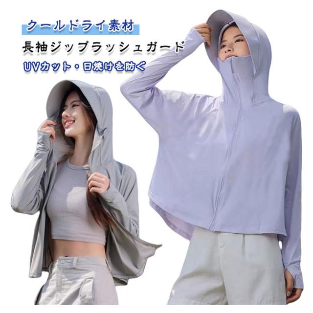 パーカー 長袖 パーカー UVカット uv パーカー レディース プルオーバー ラッシュパーカー ラッシュガード オーバーウェア ライトアウター 日焼け 指穴 つば付き UPF50+ 接触冷感 通気 速乾 おしゃれ 遮光 夏 薄手