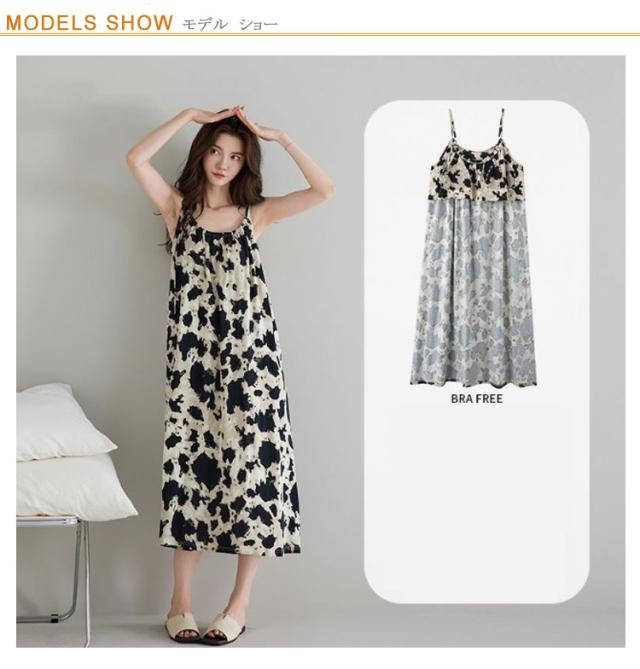パジャマ ワンピース レディース キャミワンピース ルームワンピース ロング カップ付き 夏 ルームウェア ゆったり ネグリジェ 部屋着 ノースリーブ カップ付き インナー 寝間着 リラックス 涼しい 大きいサイズ カジュアル 薄手 楽ちん