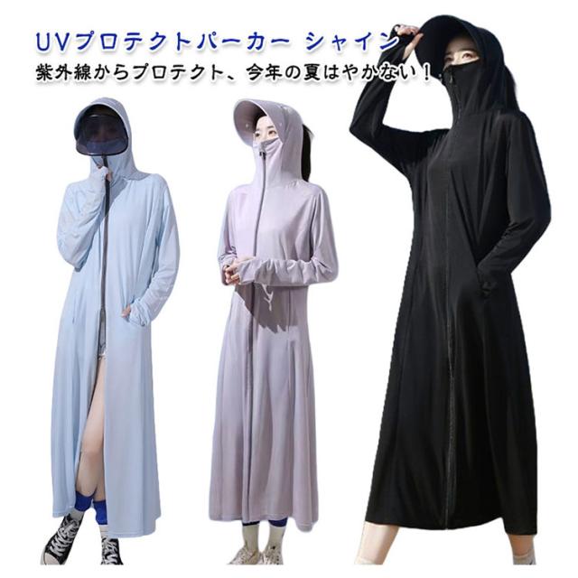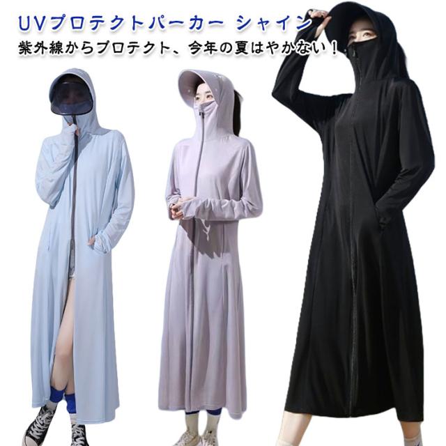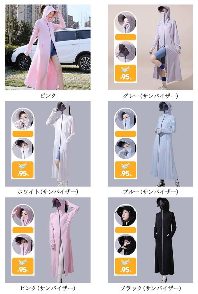 パーカー パーカー UV 日焼け防止 ラッシュガード 2タイプ レディース UVカット 長袖 フード付き UVパーカー ロング メッシュ 通気口 uvカット 冷感 遮光 サンバイザー 取り外し 指穴 服 大きいサイズ トップス 吸湿 通気 紫外線対策 uvカット バイク 自転車