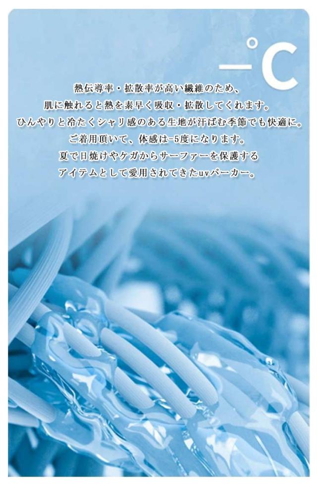 | ★「クールドライ素材」UPF+50の紫外線カット機能のあるuvパーカーです。?薄手で速乾性のあるサラサラの着心地で快適に過ごせます。【UV遮蔽率99%以上】日よけ、紫外線対策に欠かせないuvカット加工で前開きファスナーの開閉も楽々な定番ジップアップパーカー。 ★【長袖ジップラッシュガード】優れた生地を使い、UV遮蔽率99%以上から肌を守ります。顔・腕・手の甲まで完全防備、360度紫外線対策、外出でOK!様々な色があり、幅広い選択肢を用意した。 ★【速乾性】汗や水を吸収し、サラっとした着心地をキープしてくれます.マリンスポーツ以外のゴルフやフ野外会場などでもお使い頂けます。 ★.熱伝導率・拡散率が高い繊維のため、肌に触れると熱を素早く吸収・拡散してくれます。 ひんやりと冷たくシャリ感のある生地が汗ばむ季節でも快適に。ご着用頂いて、体感は-5度になります。夏で日焼けやケガからサーファーを保護するアイテムとして愛用されてきたuvパーカー。 ★【UVカット・日焼けを防ぐ】UVカット性能は最高ランクのUPF50+、真夏の強い日差しの中でも、焼かない。 ★【接触冷感・通気速乾生地】生地に含まれる冷感粒子、触れた瞬間ひんやり。速乾性と通気性にも優れた素材をを使用しているので、暑い季節もサラサラの着心地で快適に過ごせます。 ★【適用シーン】自転車、通勤、通学、バイク、運転、サイクリング、旅行、登山、釣りなどのお出かけにはもちろん、ビーチや海、レージャなどのアウトドアスポーツにも大活躍です。普段のカジュアルなコーディネートにも、部屋着にもオススメです。ランニング・ヨガ(ホットヨガ)・水着(スイムウエア)・マリンウェア・スポーツウェア・タウンウエア・ルームウエア と様々なシーンでご利用いただけます。 | |