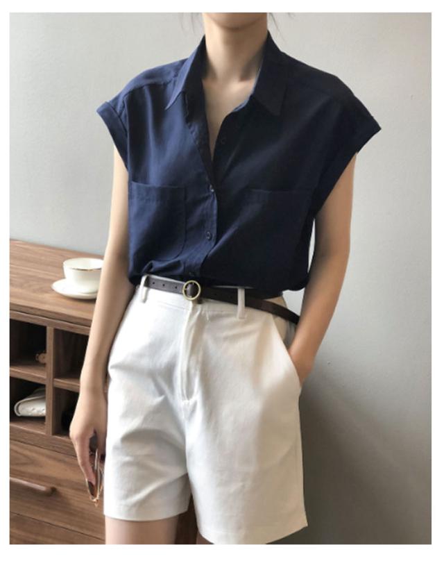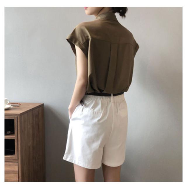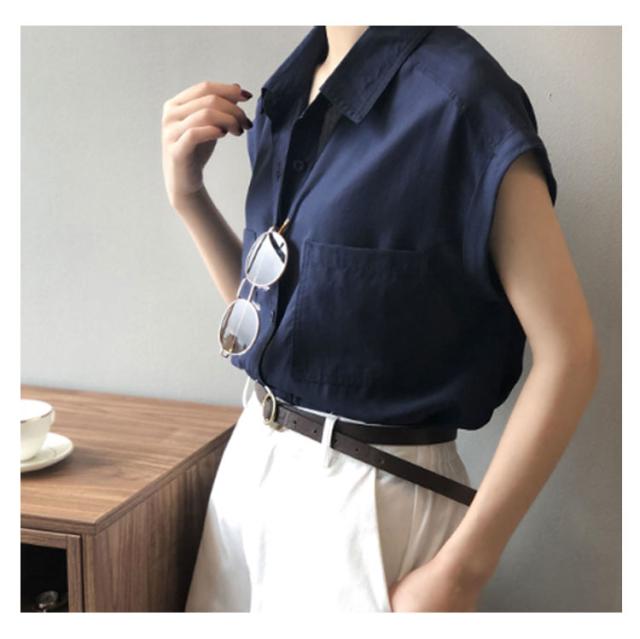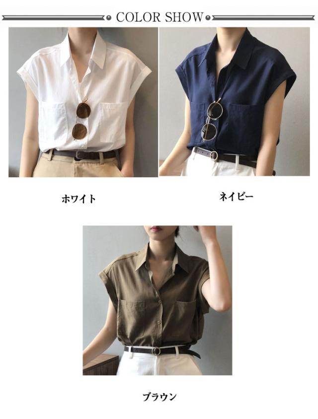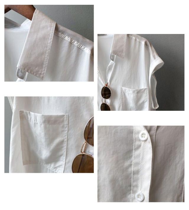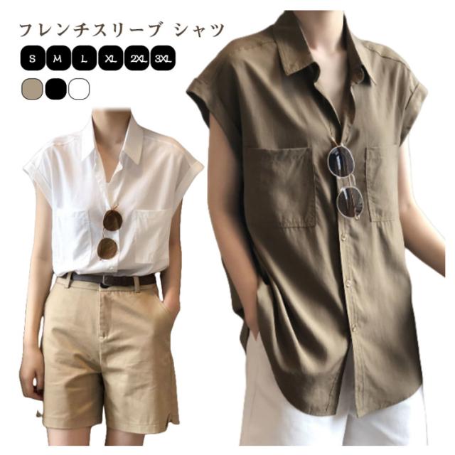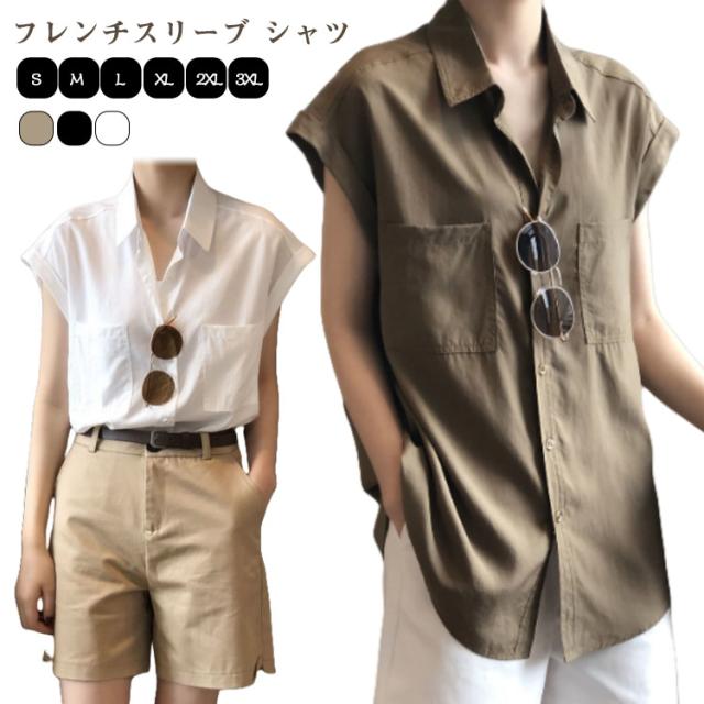 フレンチスリーブ 半袖シャツ レディース レギュラーカラー シャツブラウス トップス 夏 半袖 カジュアル 薄手 シンプル 胸ポケット付き 折り返し袖 ゆったり 体型カバー 無地 ブラウス 夏物 きれいめ おしゃれ フレンチスリーブ 白