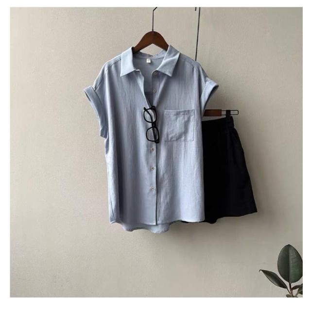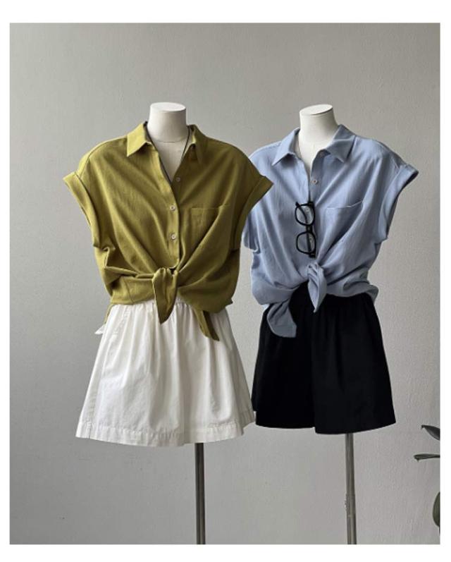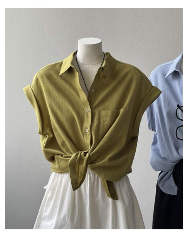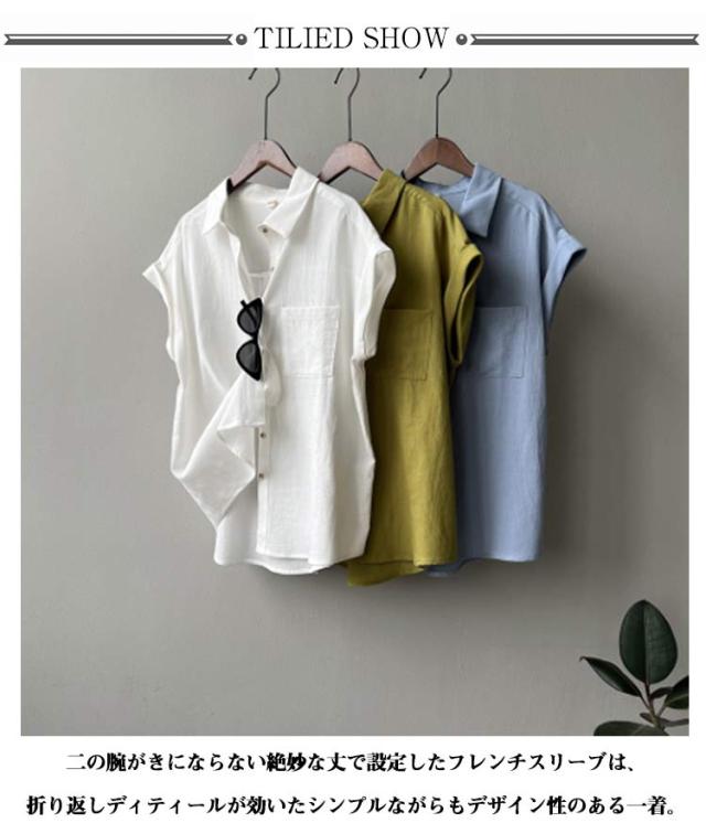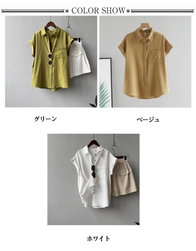 折り返し袖 シャツ シャツ シャツブラウス 襟付き フレンチスリーブ ブラウス 半袖 レディース 半袖シャツ トップス 無地 薄手 透け感 シフォン ゆったり 体型カバー 夏 シンプル カジュアル おしゃれ 夏物 白 ホワイト ベージュ グリーン 大きいサイズ