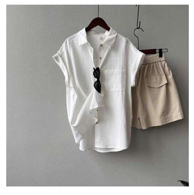 | シンプルながらもこなれ感のある印象にしてくれるフレンチスリーブブラウスが登場! 二の腕がきにならない絶妙な丈で設定したフレンチスリーブは、折り返しディティールが効いたシンプルながらもデザイン性のある一着。 シャツ襟できちんと感を出しながらも、身幅と丈にゆとりを持たせたデザインで、ほどよい抜け感を演出。 ヒップに掛かる丈感で、インでもアウトでも合わせやすく決まります◎ 普段使いからオフィスカジュアルまで、オンオフ問わず活躍するシャツです。 | |