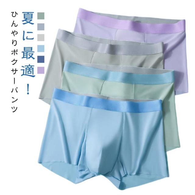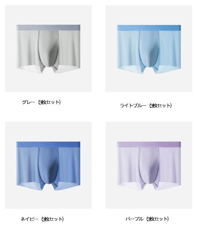 通気性 ボクサーパンツ 3枚セット ボクサーパンツ メンズ シームレス ショーツ 接触冷感 下着 肌着 薄手 アイスシルク素材 ボクサーパンツ 抗菌 速乾 インナー 男性下着