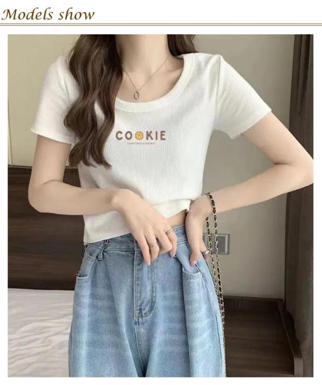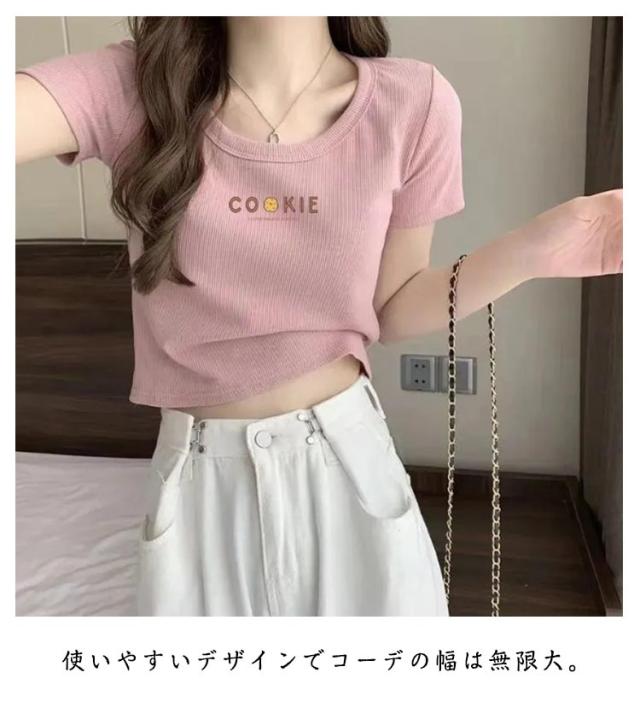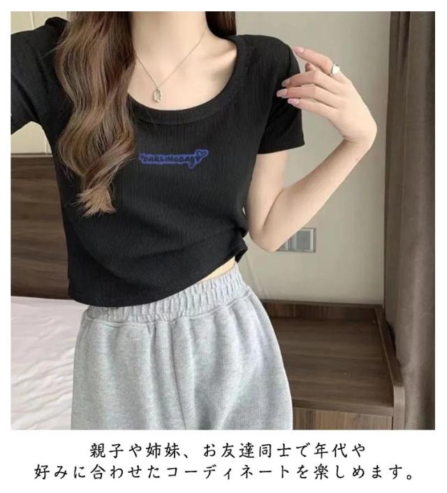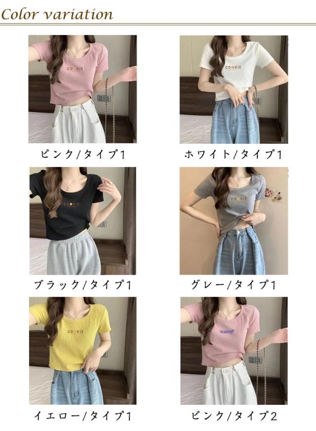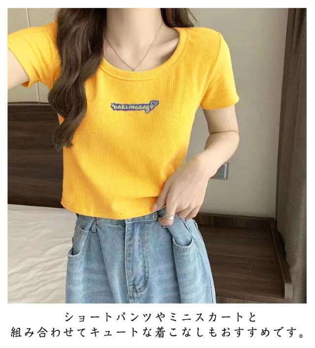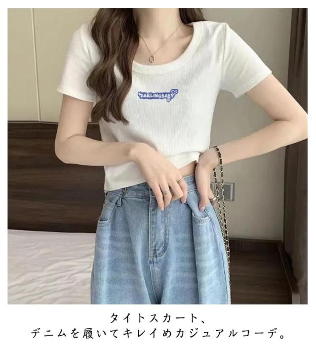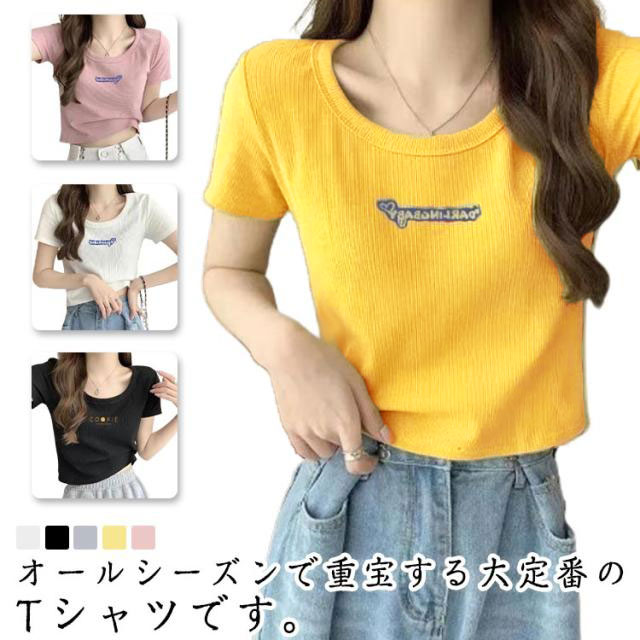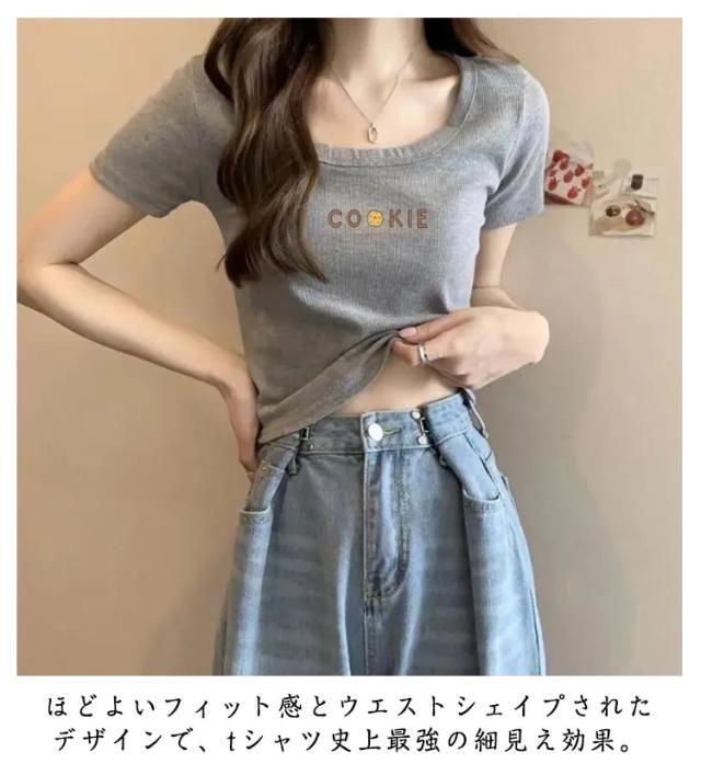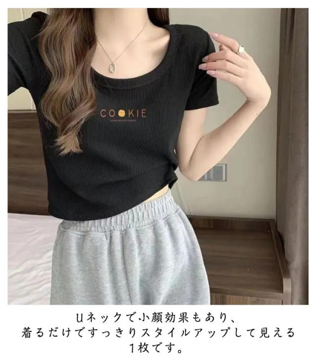 レディース フィット感 半袖 薄手 春 ショート丈 夏 tシャツ Uネック 半袖Tシャツ 襟ぐり広め かわいい tシャツ トップス リブTシャツ きれいめ おしゃれ 通学 通勤 デート 旅行 韓国ファッション INS風