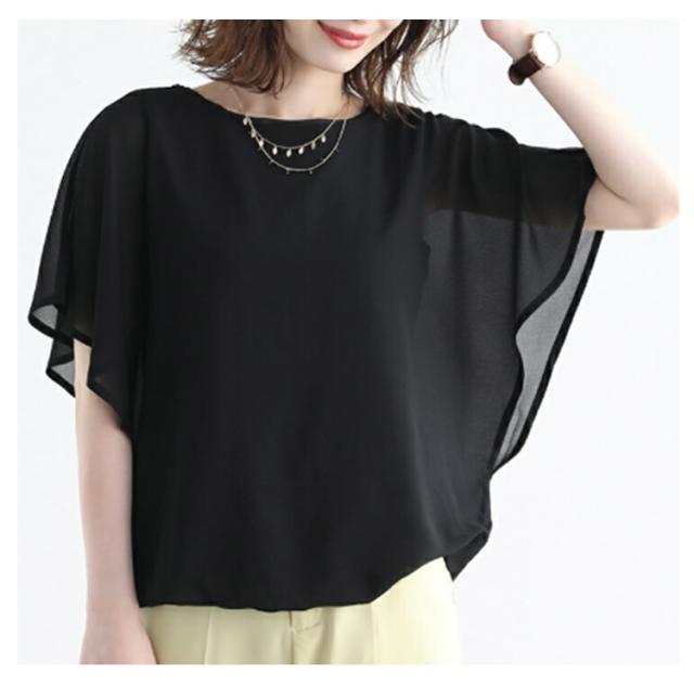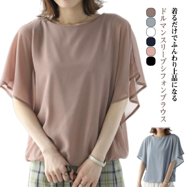 夏 ブラウス シアーブラウス シフォン 薄手 ドルマンスリーブ 半袖 トップス 透け感 体型カバー シフォンブラウス レディース シフォン ゆったり シースルー 大人可愛い 無地 シンプル きれいめ おしゃれ 白 黒 ホワイト